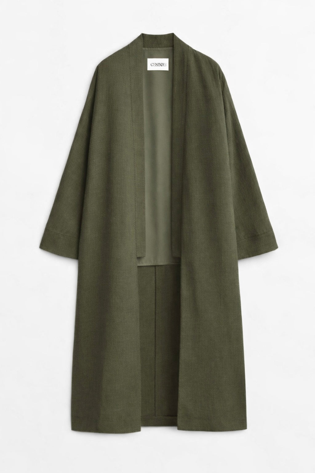 A ready to wear Long kimono with side vents. Offering a free size piece, ideal comfort for a refined yet relaxed style. Made of 100% linen. Loose cut. Wide long sleeve. Side vents at the hem. Lined.
